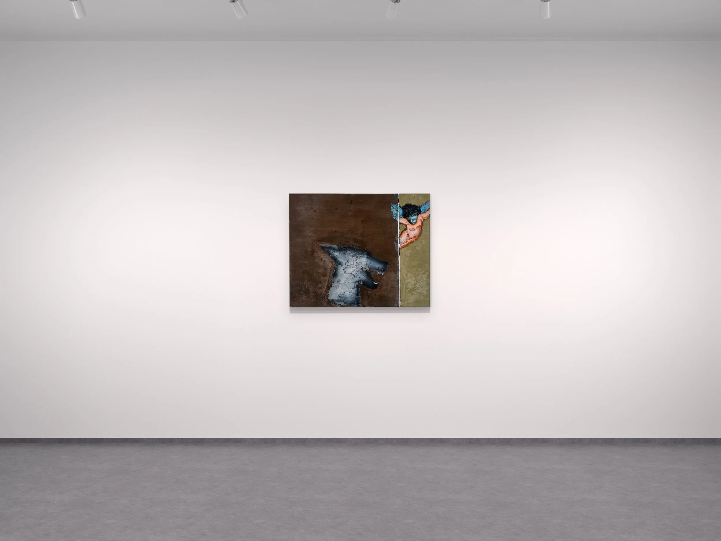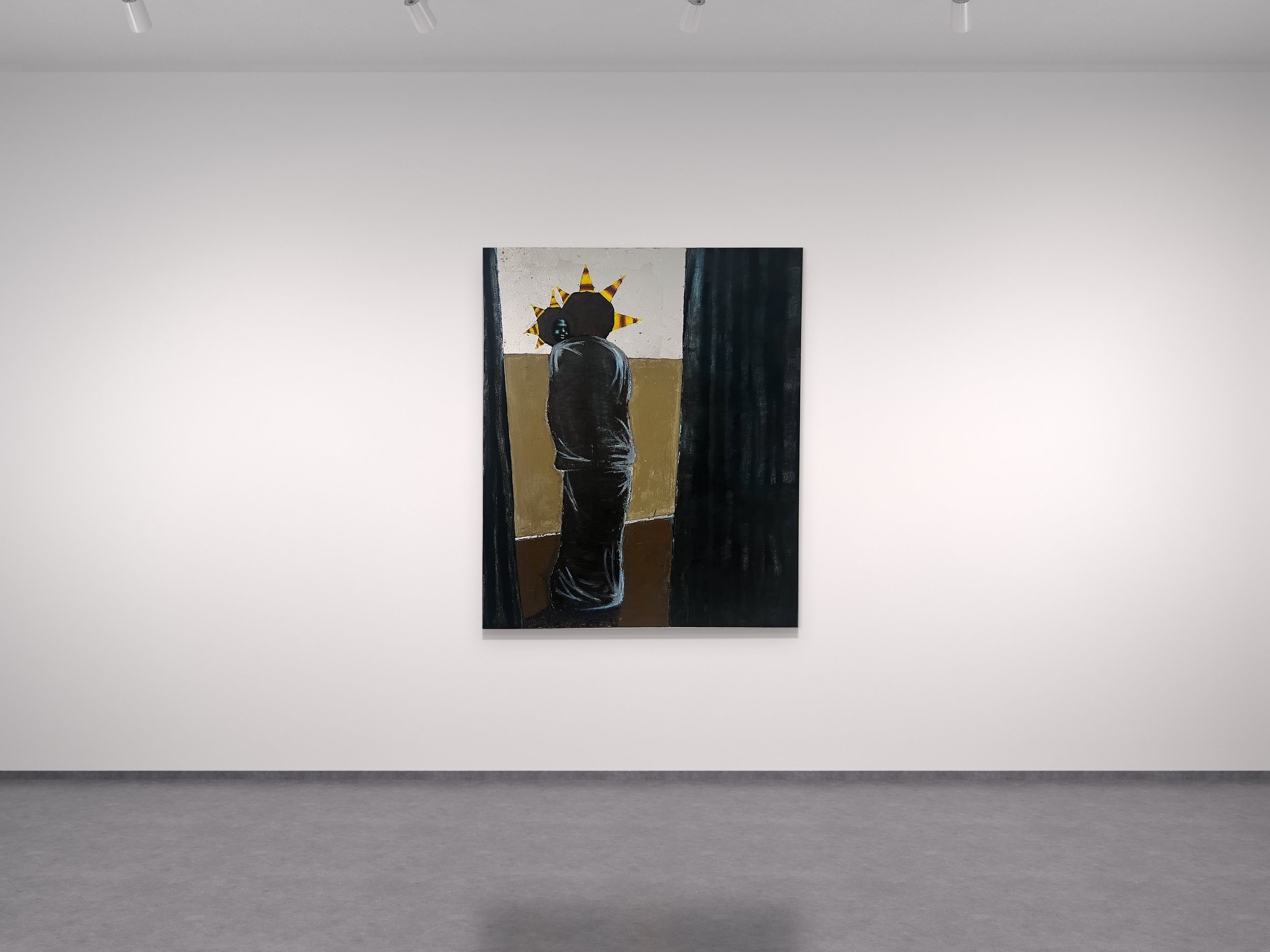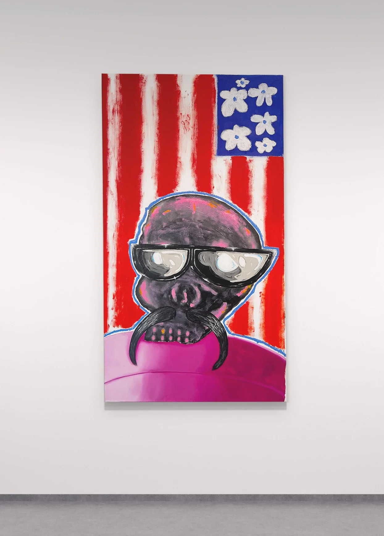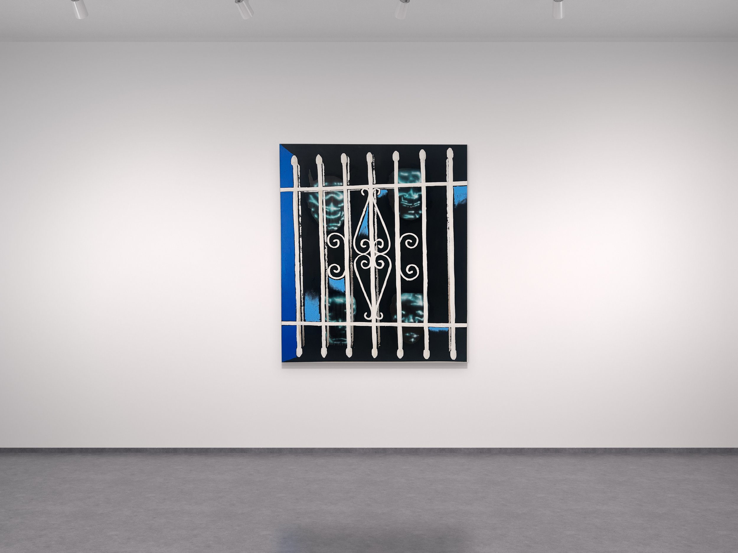 Acrylic, enamel, and oil stick on canvas